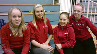 ![]() Kuvassa D-tyttöjen joukkue Niina Putkonen (vas.), Ronja Koskinen, Anna Nurmes ja Minttu Junno. Kuvasta puuttuu Soile Piironen. |