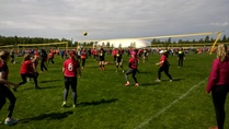 Ensimmäisessä pelissä Petää vastaaan asettui Puman Spike -joukkue. Spiken joukkueessa pelaa monta tuttua tyttöä, joihin olemme tutustuneet niin aikaisemmissakin peleissä kuin Minimaajoukkuekuvioissa. Ja juuri tästä syystä ilmassa oli reilusti jännitystä. Ensimmäisessä erässä Petän tytöt pitivät hermot hyvin kurissa ja ottivat reilun erävoiton 25-15. Erässä vahvaa suorittamista esittivät Emma Tossavainen ja Mirja Kauhanen.
