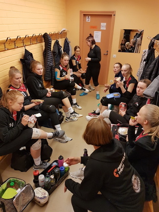 Tämän jälkeen vuorossa oli kahden pelin mittainen tauko, jonka tekikin tytöille hyvää - päivän viimeisessä pelissä JyLeä vastaan nähtiin hienoa ja iloista joukkuepelaamista. JyLe antoi hyvän vastuksen ja vei toisen erän mutta kolmanteen joukkueemme kokosi taas rivinsä ja vei sen sekä ottelun nimiinsä 2-1.